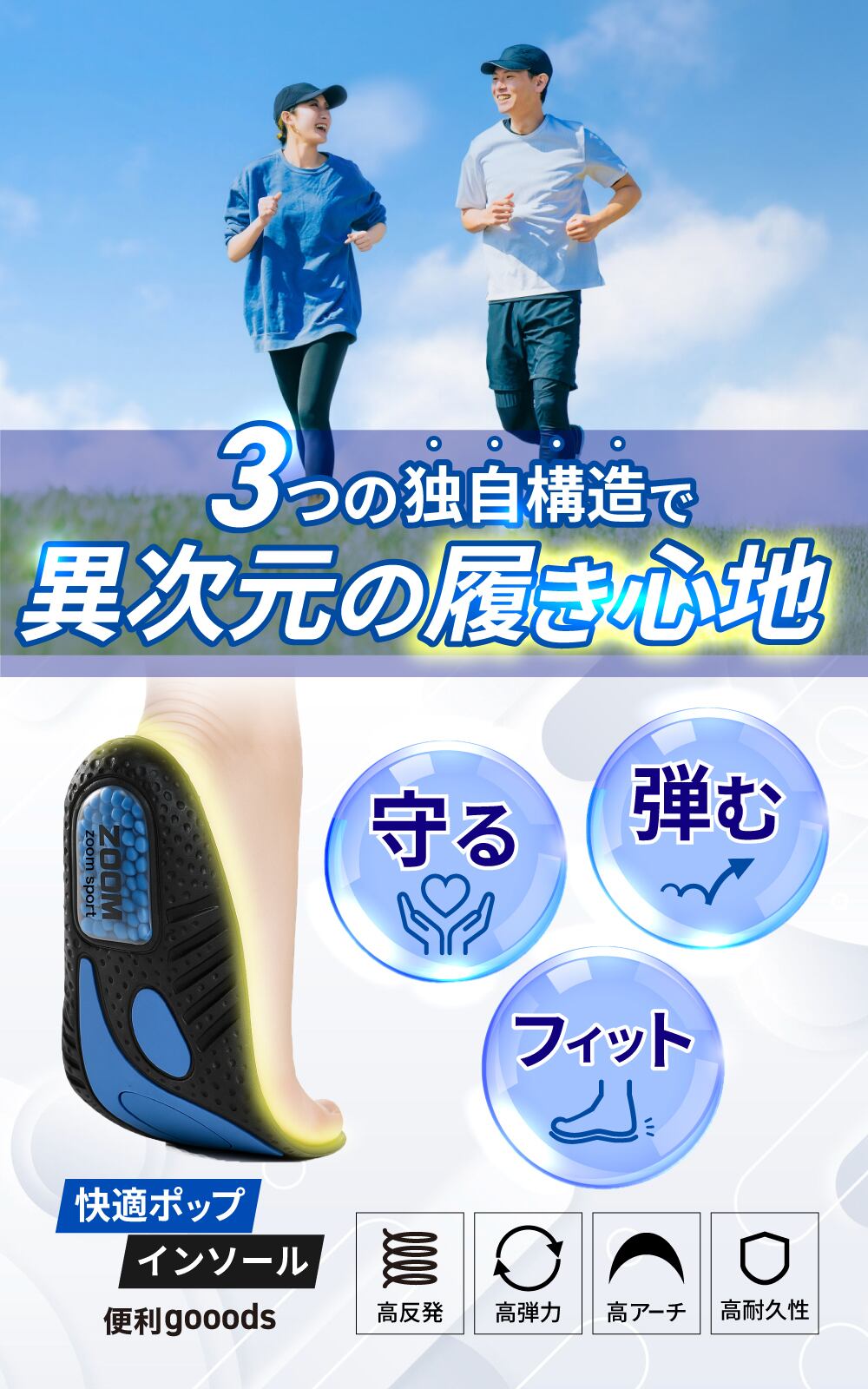 【独自3Dアーチサポート】 土踏まずを支え扁平足や足裏痛をケア、ランニング・立ち仕事まで姿勢をサポートするインソール